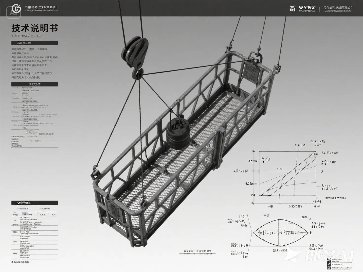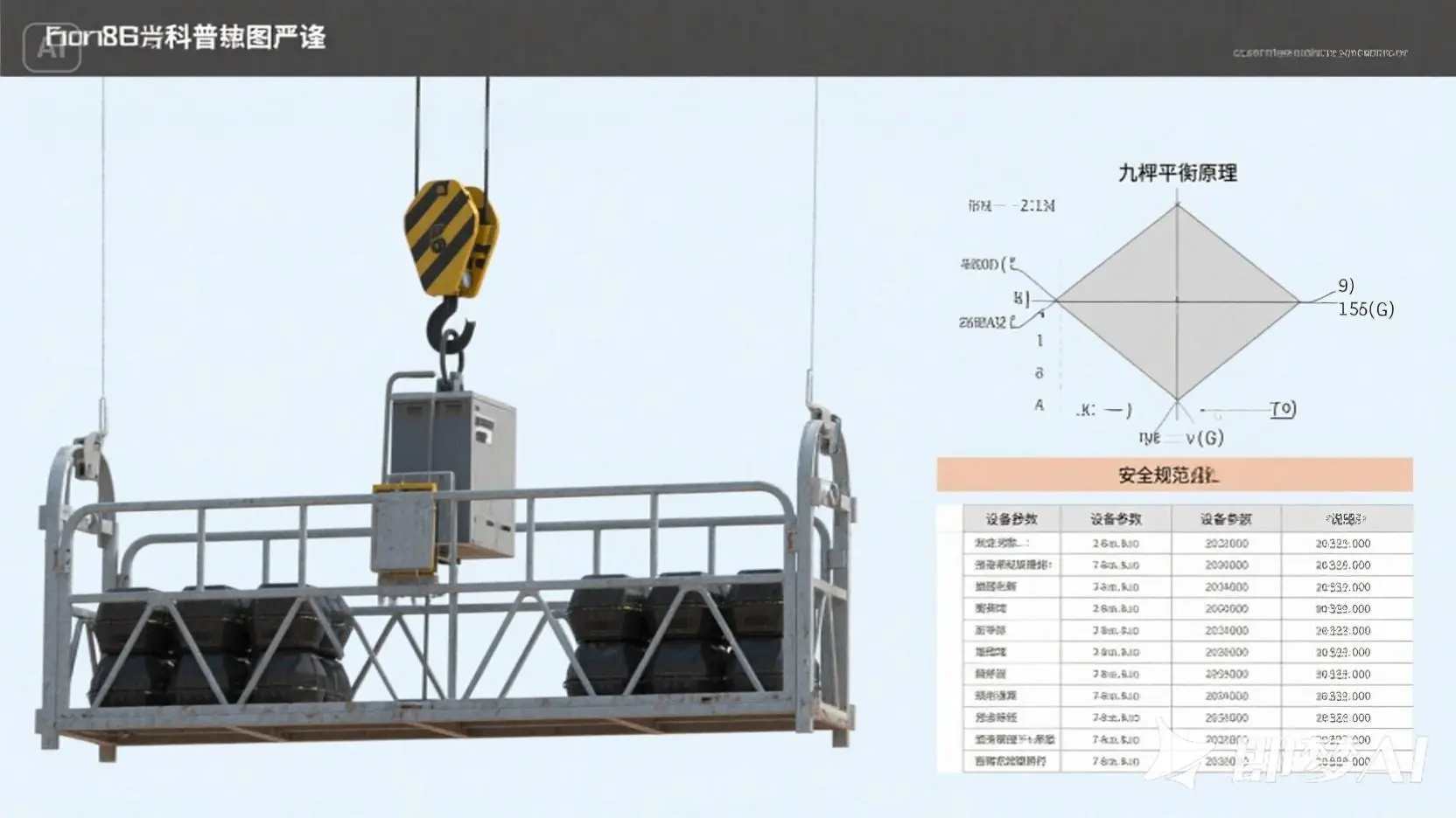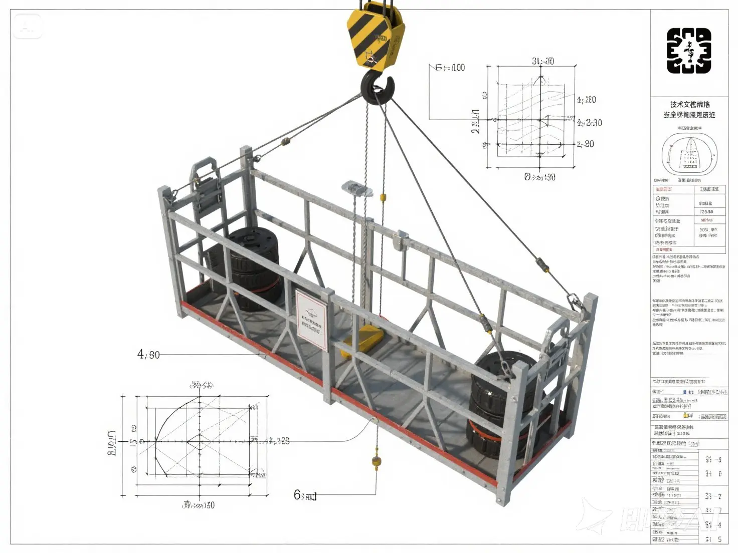 注 :若吊篮自重 G1 未知,需假设或实测;以下按 G1=300kg 示例计算(常规吊篮平台自重约 200~400kg)。